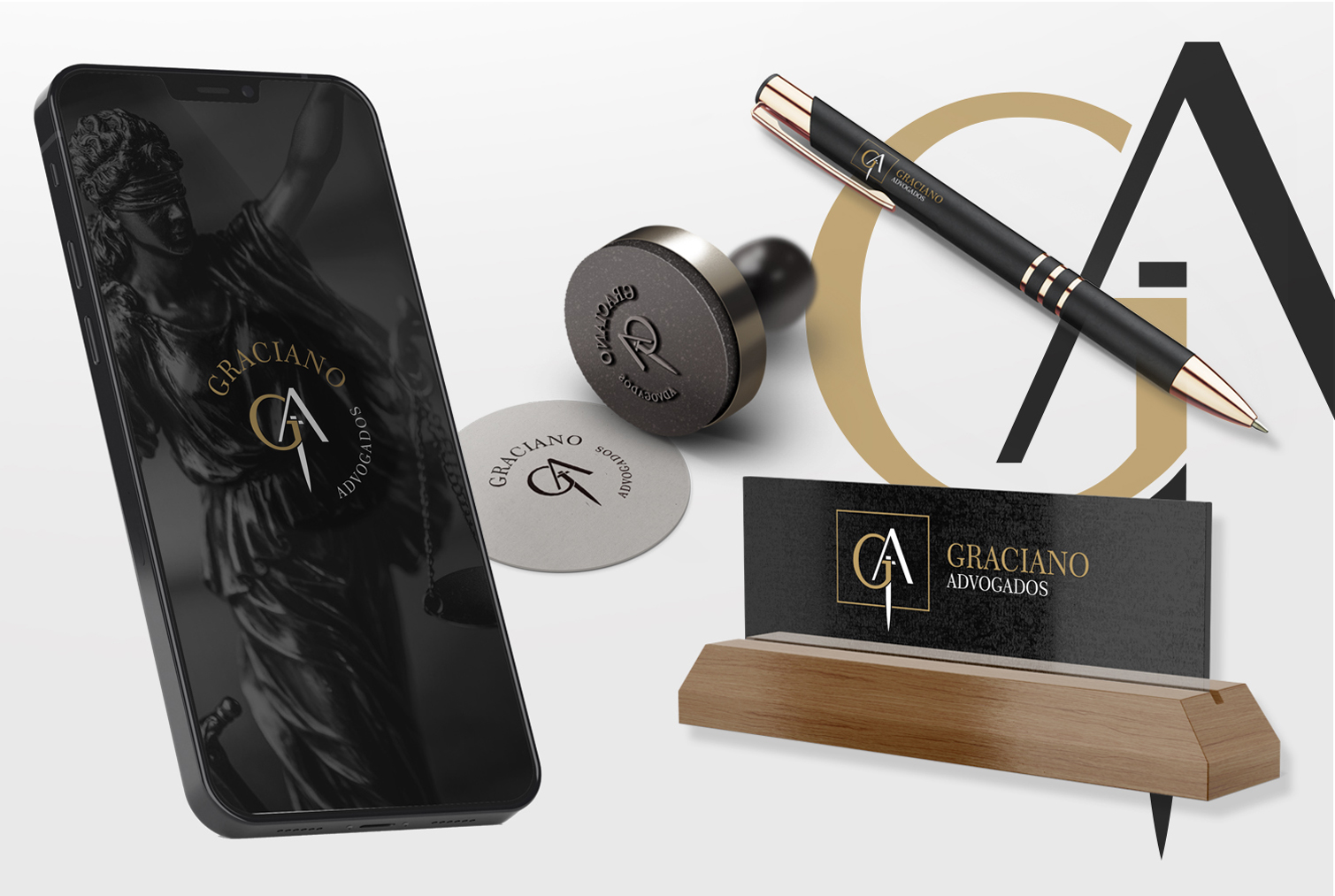 The brand symbol has as concept a fusion between the initials G and A associated with the sword of Thêmis, which symbolizes courage and determination in the pursuit of justice.